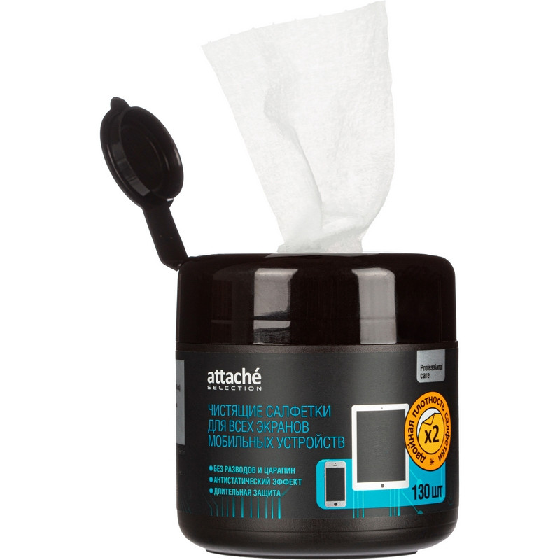 Салфетки Attache Selection в м.тубе для экранов моб. устр., пов/пл, 130 шт