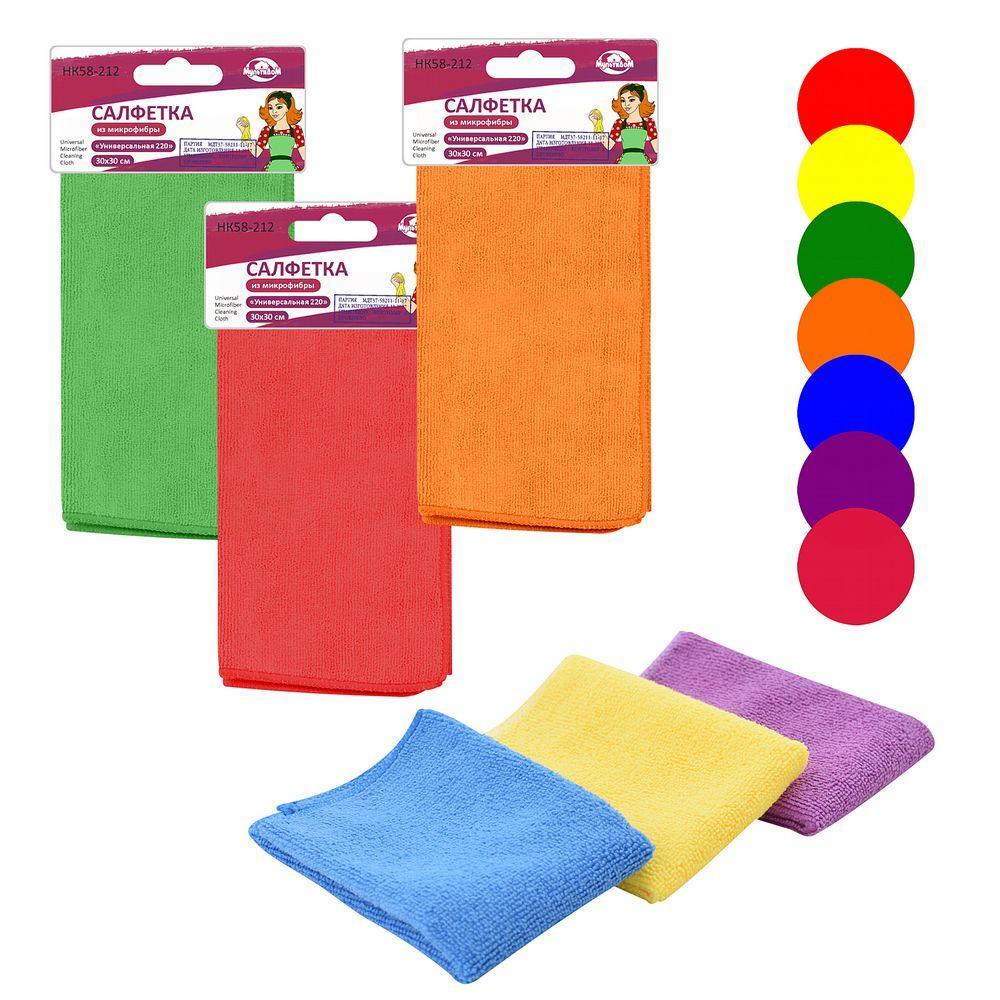 Салфетка из микрофибры универсальная "Универсальная 220" 30*30 1шт. 3 цвета