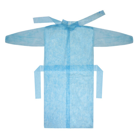 Халат одноразовый голубой на завязках КОМПЛЕКТ 10 шт., XXL 140 см, резинка, 25 г/м2, СНАБЛАЙН