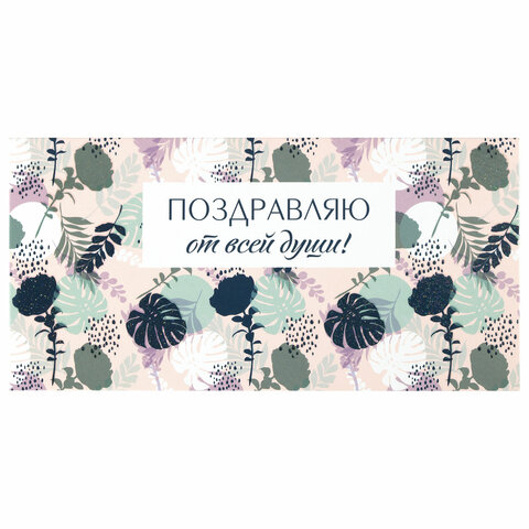 Конверт для денег "ПОЗДРАВЛЯЮ ОТ ВСЕЙ ДУШИ!", Цветы, 166х82 мм, блестки, ЗОЛОТАЯ СКАЗКА, 113753