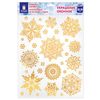 Наклейка для окон двусторонняя МНОГОРАЗОВАЯ 30х38 см, "Снежинки", фольга, золото, ЗОЛОТАЯ СКАЗКА, 591927