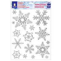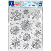Наклейка для окон двусторонняя МНОГОРАЗОВАЯ 30х38 см, "Снежинки", фольга, серебро, ЗОЛОТАЯ СКАЗКА, 591928