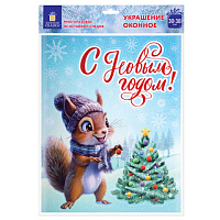 Наклейка для окон двусторонняя, 30х38 см "Белочка", глиттер, серебро, ЗОЛОТАЯ СКАЗКА, 592576