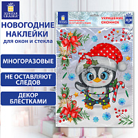 Наклейка для окон двусторонняя, МНОГОРАЗОВАЯ, 30х38 см, "Пингвин", ЗОЛОТАЯ СКАЗКА, 592136