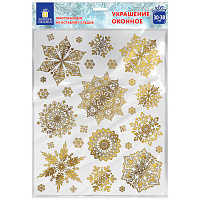 Наклейка для окон (1 штука) двусторонняя, 30х38 см, "Ассорти № 3", глиттер, ЗОЛОТАЯ СКАЗКА, 592579