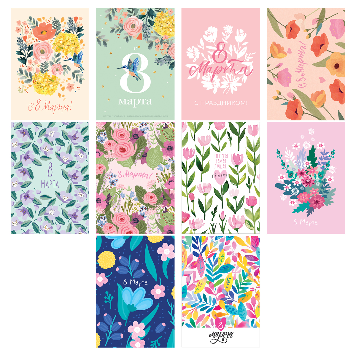 Набор открыток 30 штук, "Women's day", глянцевая ламинация