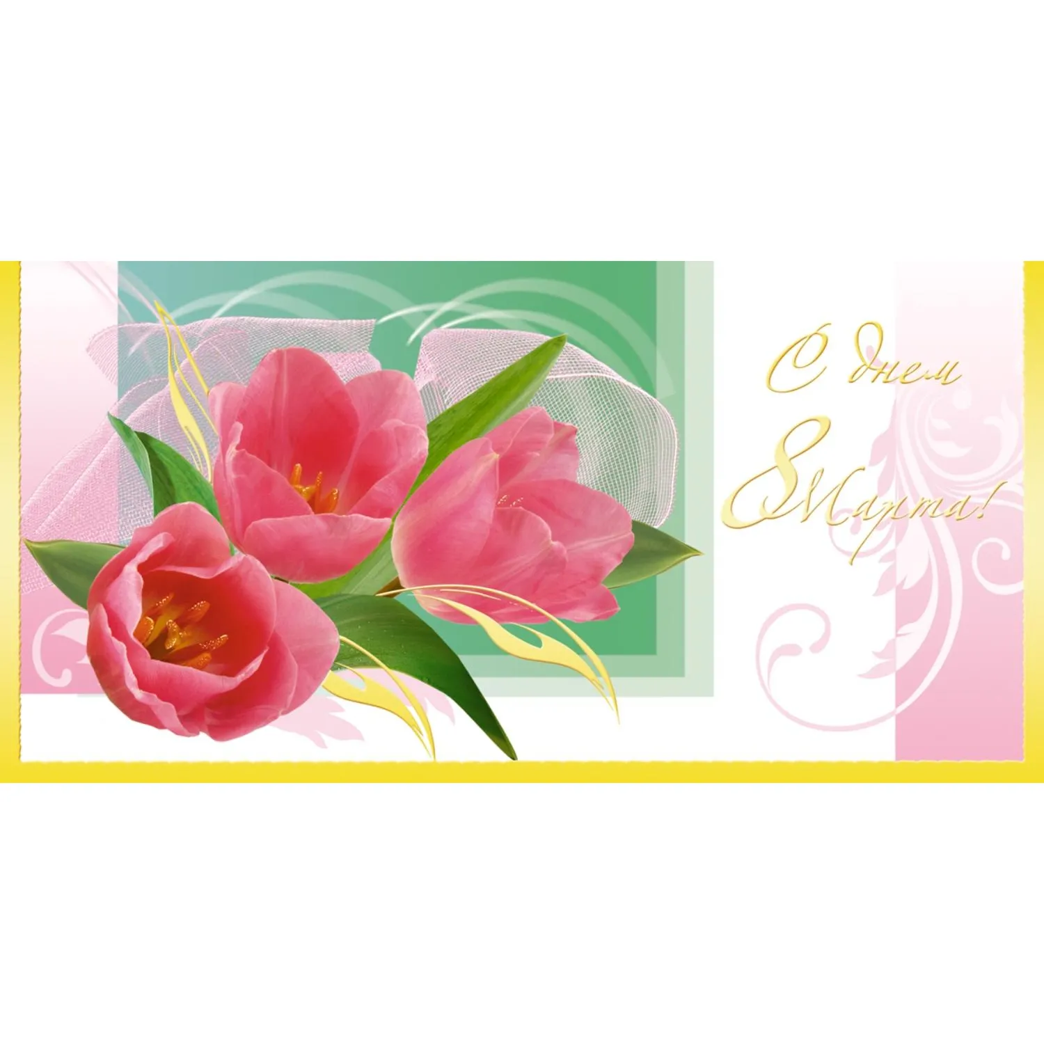Открытка поздравительная "С Днем 8 Марта! Тюльпаны", 105?210 мм (10 штук в упаковке, 1530-10)