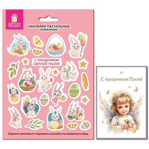 Украсьте пасхальные яйца легко и красиво с набором наклеек пасхальных "Мира и добра" ЗОЛОТАЯ СКАЗКА! На листе формата 21х14,8 см расположены наклейки в весёлых и жизнерадостных дизайнах: забавные кролики, пёстрые яички и нежные цветочные узоры – всё, чтобы передать дух светлого праздника (26 картинок). Яркие краски и праздничные мотивы мгновенно создадут атмосферу весны и радости. Размер каждой наклейки – до 3 см. В ПОДАРОК – поздравительная пасхальная открытка из плотного картона размером 7х10 см. Наклейки выполнены на самоклеящейся бумаге: просто оторвите по контуру и приклейте! Идеально подходят не только для украшения пасхальных яиц, но и для множества других идей: декор формы для кулича, оформление подарков, творчество с детьми, скрапбукинг и многое другое.