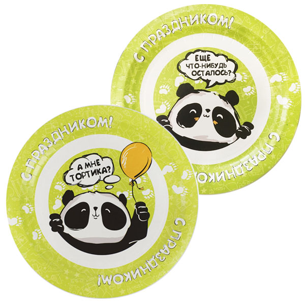 Тарелки бумажные Панда "С Праздником!" 23 см 6 шт