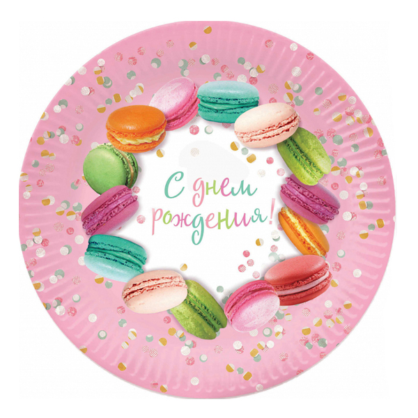 Тарелки бумажные "С Днем Рождения" Макаруны 18 см 6 шт