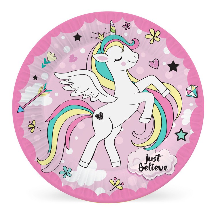 Набор бумажных тарелок Единорог, 6 штук d=180 мм.
