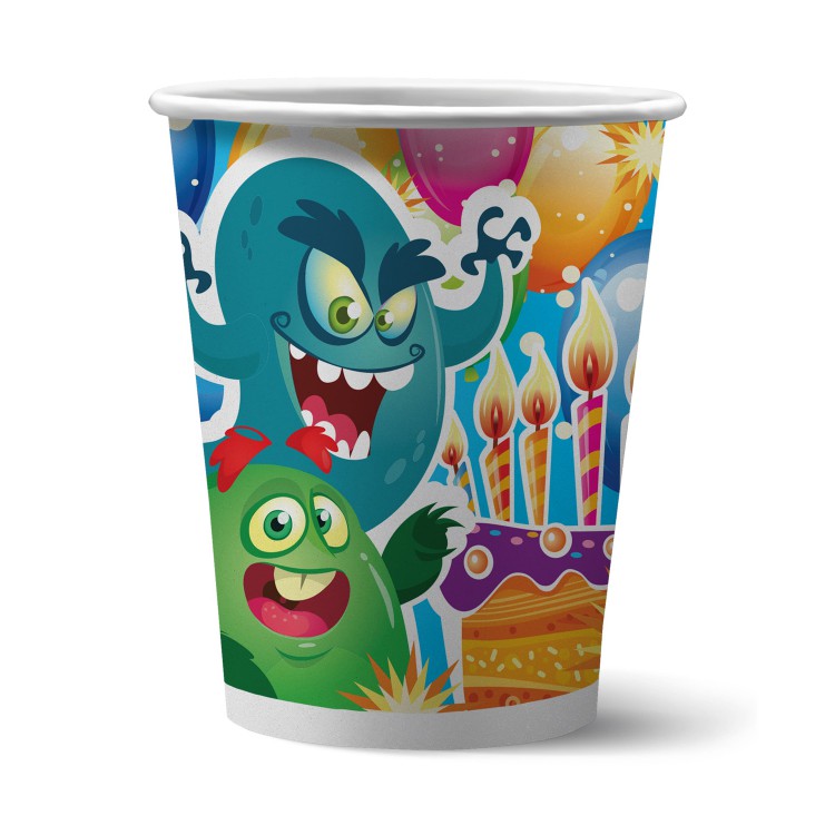 Набор бумажных стаканчиков «Чудики» − стильный элемент для украшения праздничного стола в День Рождения ребенка. На каждом стаканчике изображен забавные монстрики. Набор для детского праздника состоит из 6 бумажных стаканов объемом 250 мл, упакованных в пластиковый пакет с еврохолдером. Стаканчики изготовлены из плотного мелованного картона, который не промокнет во время праздника. Необычный дизайн стаканов с легкостью поднимет настроение гостям и поможет создать сказочную атмосферу праздника. Одноразовая посуда – простое и стильное украшение для любой вечеринки.