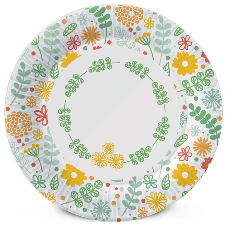 Набор бумажных тарелок «Желтые цветы» − стильный элемент для украшения стола на пикнике, вечеринке или в День Рождения. Каждая тарелка украшена лаконичным узором в мелкий цветочек. Набор для пикника состоит из 6 бумажных тарелок диаметром 180 мм, упакованных в пластиковый пакет с еврохолдером. Тарелки изготовлены из плотного мелованного картона, который не промокнет во время пикника. Необычный дизайн тарелок с легкостью поднимет настроение и поможет создать веселую атмосферу вечеринки. Одноразовая посуда – простое и стильное украшение для любого праздника и пикника.