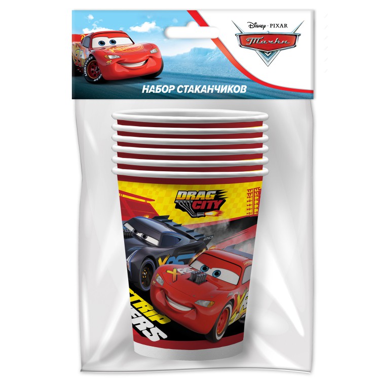Набор бумажных стаканчиков «Тачки» ? стильный элемент для украшения праздничного стола и комнаты в День Рождения. Каждый стаканчик украшен изображением популярных машинок. Набор для детского праздника состоит из 6 бумажных стаканов объемом 250 мл, упакованных в пластиковый пакет с еврохолдером. Стаканчики изготовлены из плотного мелованного картона, который не промокнет во время праздника. Необычный дизайн стаканов с легкостью поднимет настроение гостям и поможет создать особую атмосферу праздника. Одноразовая посуда – простое и стильное украшение для любой вечеринки.
