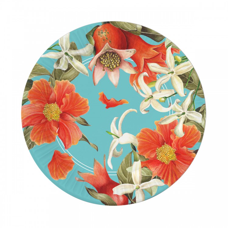 Набор бумажных тарелок Гранат на бирюзовом, 6 шт d=230 мм.