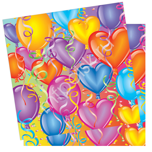Красочные салфетки из коллекции «Праздничное настроение». На каждую нанесены принты в виде разноцветных воздушных шаров круглой формы и сердечек. С помощью сервировочных аксессуаров можно украсить стол, создав атмосферу праздника и веселья. Трехслойные салфетки можно также использовать для изготовления декора. В наборе 12 салфеток. Размер: 33х33см.