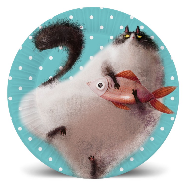Набор бумажных тарелок Кот и рыбка, 6 штук, d=180 мм.