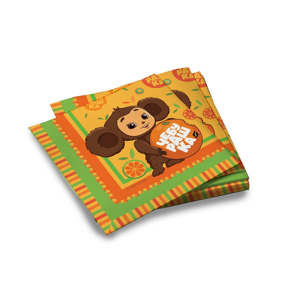 Чебурашка. Салфетки бумажные трехслойные 33*33 см, 20 штук