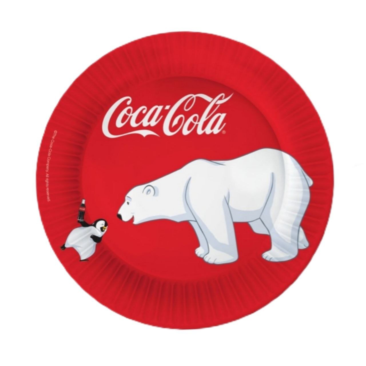 Бумажные одноразовые тарелки из коллекции Coca-Cola красного цвета с изображением пингвина и белого медведя. В набор входит 6 одинаковых тарелок, диаметром 23 см. Красивая и яркая посуда украсит праздничный стол и подарит гостям хорошее настроение. Тарелки удобны и просты в использовании, окрашены экологичными красками. Прочная посуда из картона хорошо держит форму и не размокает во время применения. Вес: 91 гр.