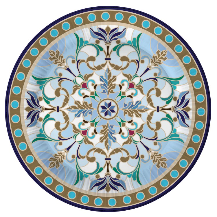 Набор бумажных тарелок Царская-калейдоскоп голубая, в т/у пленке, 6 штук, d=180 мм.