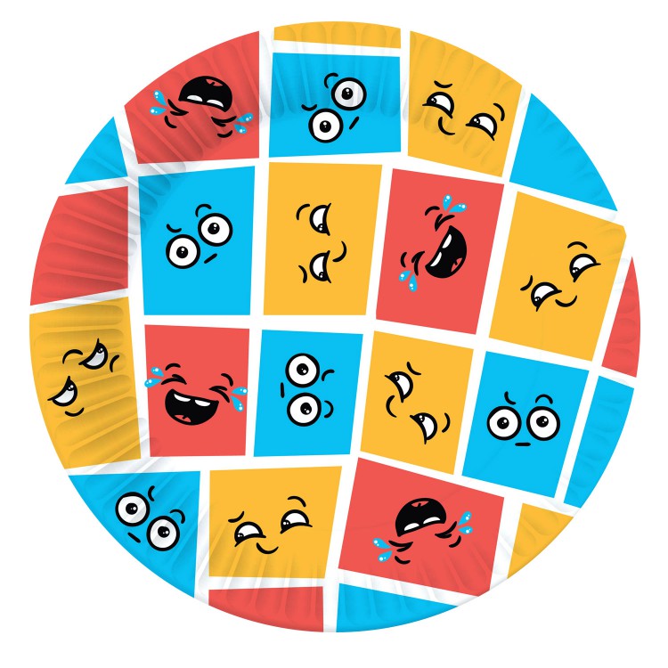 Набор бумажных тарелок «Эмоции». Интересный дизайн и необычная идея замечательно подойдут для вечеринок, пикников и поездок. Также можно заказать их для детских мероприятий, чтобы дети могли учиться распознавать эмоции. Замечательно подойдёт к соответствующему набору стаканов.