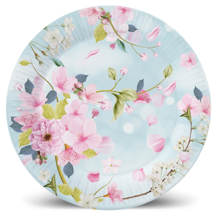 Набор бумажных тарелок Яблоневый цвет, в т/у пленке, 6 штук, d=230 мм.