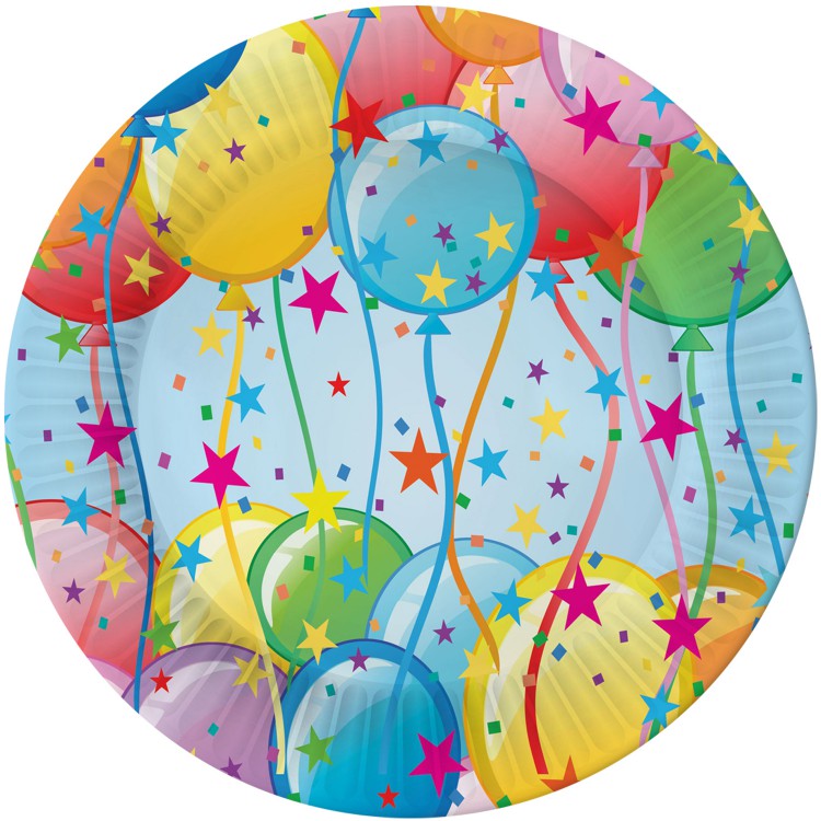 Набор бумажных тарелок «Шары». Очень хорошо подойдёт для дня рождения! Яркие и красочные рисунки точно понравятся имениннику и гостям мероприятия!