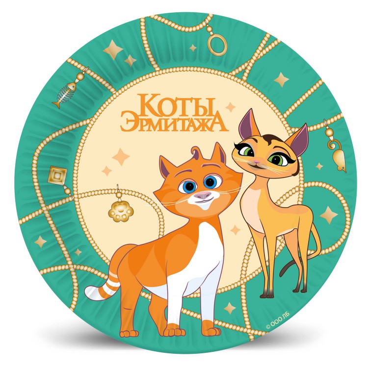 Коты Эрмитажа. Набор бумажных тарелок, 6 штук, d=180 мм.
