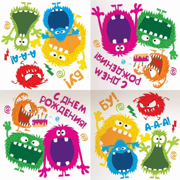 Салфетки Монстрики 33см X 33см, 12 штук
