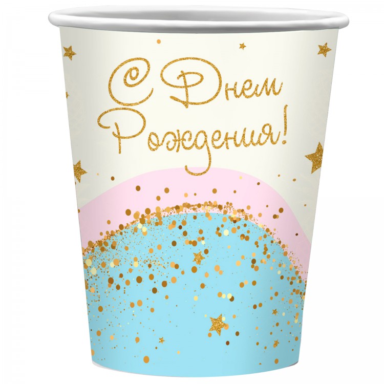 Набор бумажных стаканов Воздушный зефир. С Днем Рождения!, в т/у пленке, 6 штук*250 мл.