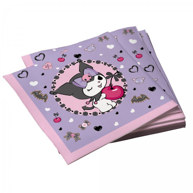 Салфетки бумажные трехслойные Kuromi "Любимая вишенка" 33*33 см, 20 штук