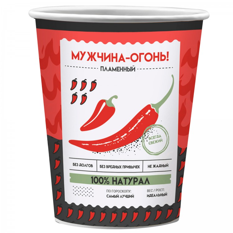 Стаканы "Перцы" объёмом 250 мл выполнены из специальной плотной бумаги, герметичны и не пропускают жидкости. Одноразовая праздничная посуда станет дополнительным украшением торжества, а также поможет минимизировать время организации знаменательного события. Одноразовые стаканы избавят Вас от необходимости мыть посуду, оставшуюся после вечеринки. Идеальны для любого праздника и корпоративных мероприятий любого формата. Одноразовая посуда подходит для холодных и горячих блюд, изготовлена из высококачественного материала высокой плотности, который не влияет на вкус продуктов. Стаканы одноразовые в стильном запоминающемся юмористическом дизайне - о мужчинах - зададут тон всему мероприятию. Хорошо подойдут для пикника из-за изображения перца. Одноразовая посуда очень практичная, лёгкая, не занимает много места. В наборе 6 стаканов.