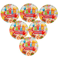 Тарелки бумажные 6 шт, 18 см, пакет+хедер, с днем рождения ЧУДО ПРАЗДНИК