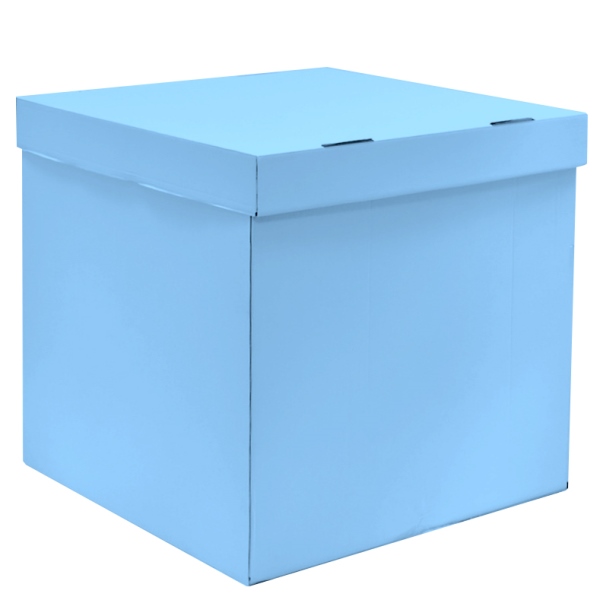 Картонная коробка голубого цвета для воздушных шаров с крышкой кубической формы. Украсить коробку-сюрприз с подарком можно бантами или лентами, надувными шарами. В объемной емкости также удобно хранить или транспортировать воздушные шарики из латекса или фольги голубого цвета. Материал – плотный, износоустойчивый картон. Размер коробки: 60х60х60 см.
