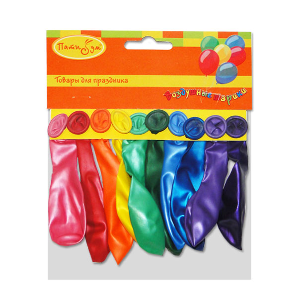 Воздушные шары из натурального латекса. Ассорти из воздушных шаров двух типов - металлик и перламутр. Ассорти цветов собрано в случайном соотношении, исключая воздушные шары металлик темных цветов и серебрянного цвета, а также цвета воздушных шаров перламут: белый, персиковый и слоновая кость. Воздушные шары представлены в упаковке под фирменным хедером Патибум. Воздушные шары производства Латекс Оксидентл характеризуются эластичным латексом, равномерным окрасом шара и высоким качеством. Эти шары удобны оформителям в работе благодаря хвостику, который растягивается до 20см. Воздушные шары типа металлик характеризуются ярко выраженным металлическим блеском, они непрозрачны и имеют активный блик. Воздушные шары типа перламутр характеризуются более нежными, чем у металлика, цветами воздушных шаров и имеют более мягкий, рассеянный блик. Воздушные шары металлик и перламутр в ассорти предназначены для оформления и продажи в розницу.
