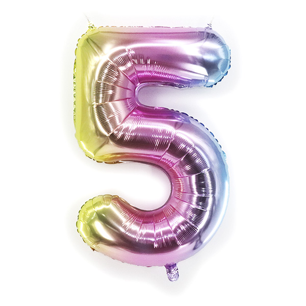 Воздушный шарик нежного радужного цвета в форме цифры 5. Отличное украшение для вашего праздника.