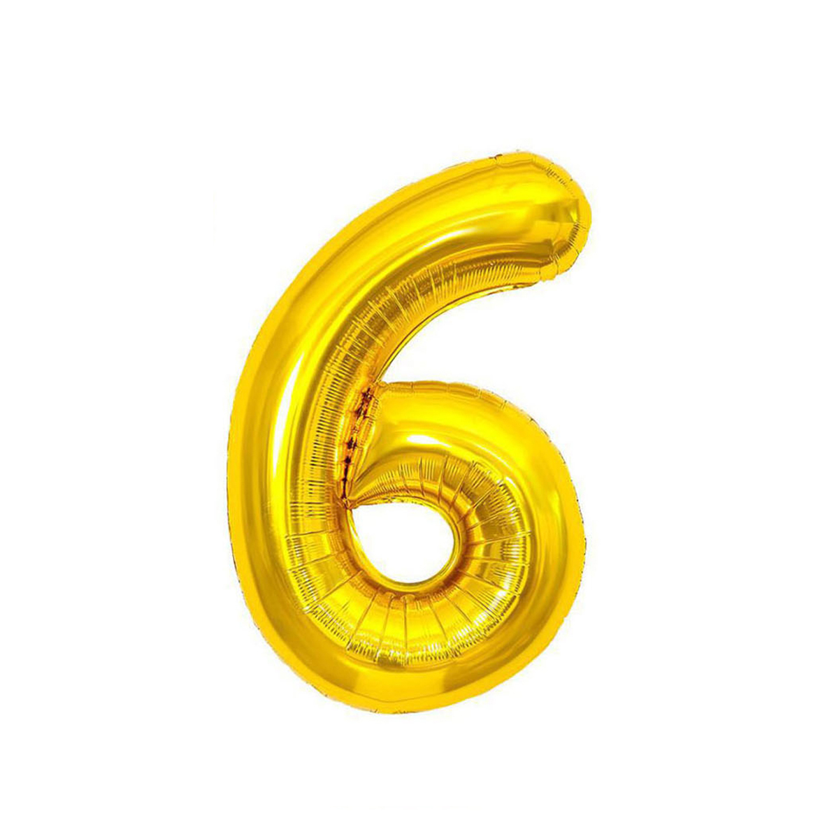 Воздушный шар, 40", MESHU, цифра 6, золотой, фольгированный