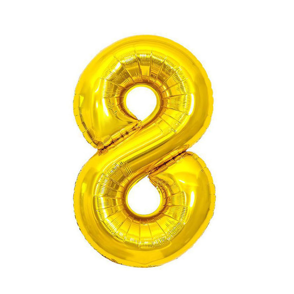 Воздушный шар, 40", MESHU, цифра 8, золотой, фольгированный