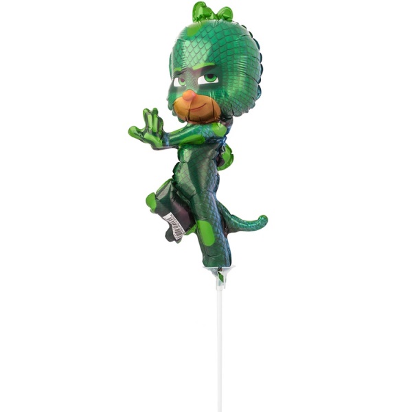 Мини-фигура воздушный шар герой мультфильма «Герои в масках» Гекко. Фигурный шарик в виде мальчика в зеленом костюме с хвостом рептилии понравится поклонникам мультсериала и подарит яркие эмоции на празднике. Шар-фигуру можно использовать как игрушку, или дополнить им оформление интерьера, фотозоны. Размер: 12"/ 33см. Мини фигуры, шары на палочке