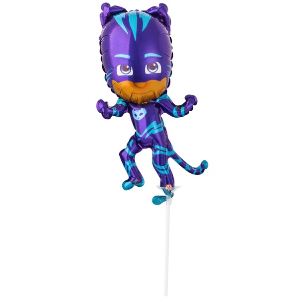 Шарик мини-фигура персонажа мультфильма «Герои в масках» Кэтбоя. Смелый Коннор в синем костюме с кошачьими ушами и хвостом станет отличным подарком на день рождения фанату мультсериала. Шар-фигуру можно сочетать с воздушными шариками из фольги и латекса при составлении композиций для украшения фотозоны или интерьера. Размер: 12"/ 33см. Мини фигуры, шары на палочке