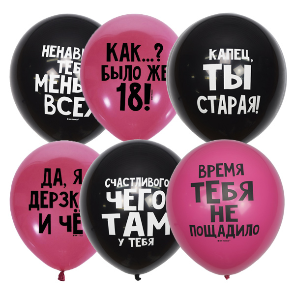 Воздушные шарики для именинниц с чувством юмора! Все надписи на шариках сделаны в женском или нейтральном обращении.