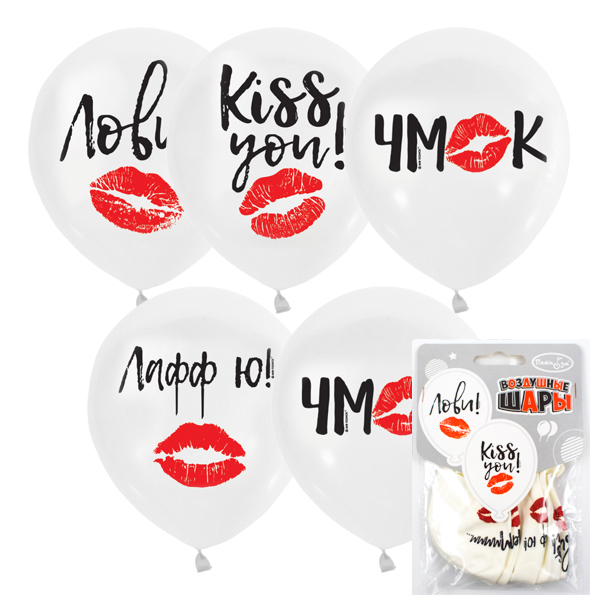 12"/30см Набор шаров WHITE 1ст.2 цв. рис Поцелуй 5шт
