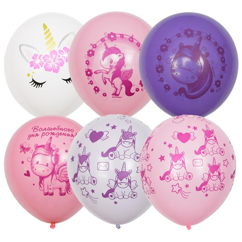 Воздушные шары, 25шт., M12/30см, ПатиБум "Единорог. День рождения", пастель+декор, шелк, ассорти. 6 058 111