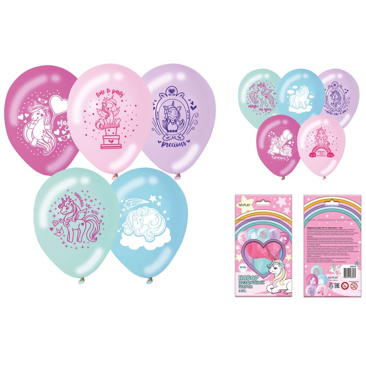 Воздушные шарики «Единорог» 30 см, 5 штук