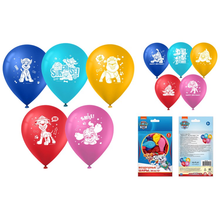 Воздушные шарики «Щенячий патруль» 30 см, 5 штук