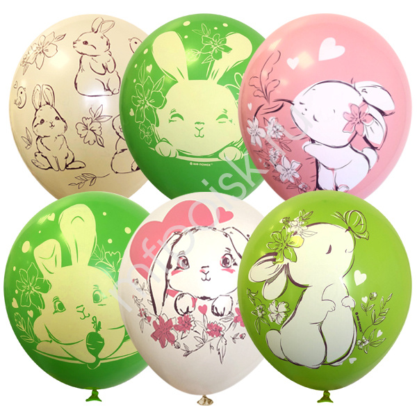 Набор шаров ассорти с рисунком Зайки 25 штук. MP 12"/30см