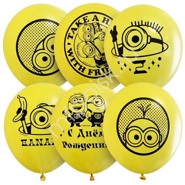 Набор шаров Миньоны ассорти, с рисунком, 5 штук. M 12"/30см