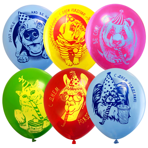 Надувные шарики «С Днем Рождения» можно использовать для оформления интерьера, фотозоны, а также как дополнение к основному подарку для именинника. Однотонные латексные шарики голубого, желтого, розового, зеленого и красного цветов имеют гладкую поверхность и изготовлены из эластичного и экологичного материала. На каждом шаре есть принт в виде забавного животного и надписи с пожеланиями на русском или английском языке. В наборе 25 шаров, размером 12"/30см. Производитель: Latex Occidenta