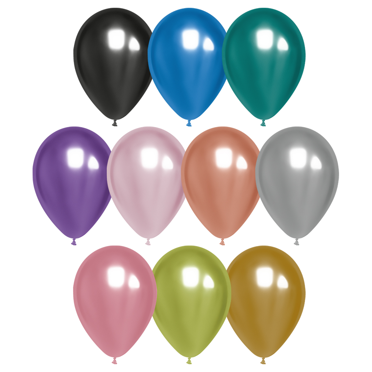 Воздушные шары, 100шт., М12/30см, MESHU, хром, ассорти