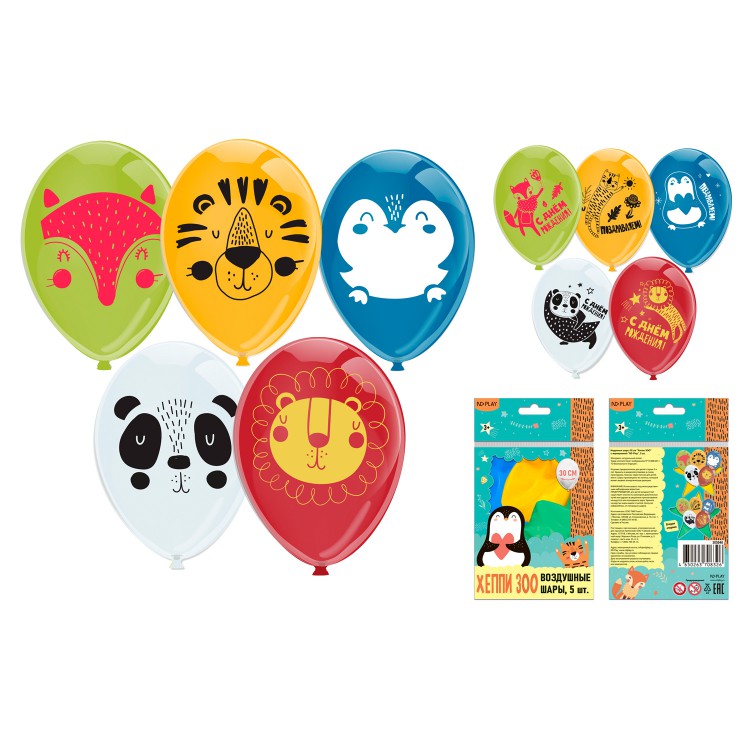 Воздушные шарики «Хэппи ЗОО» 30 см, 5 штук